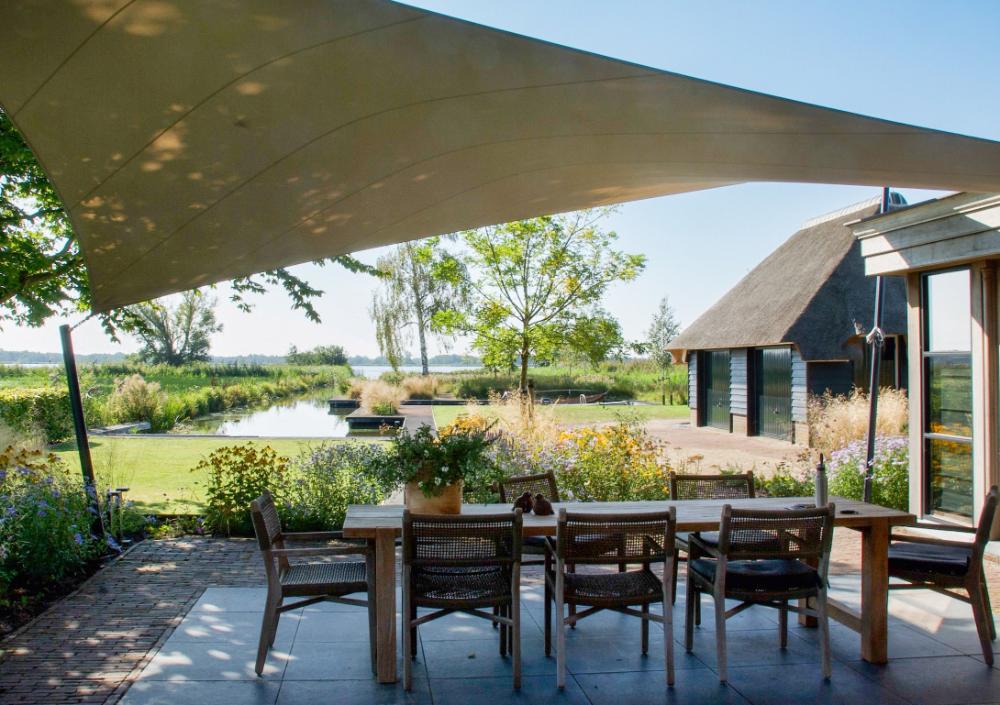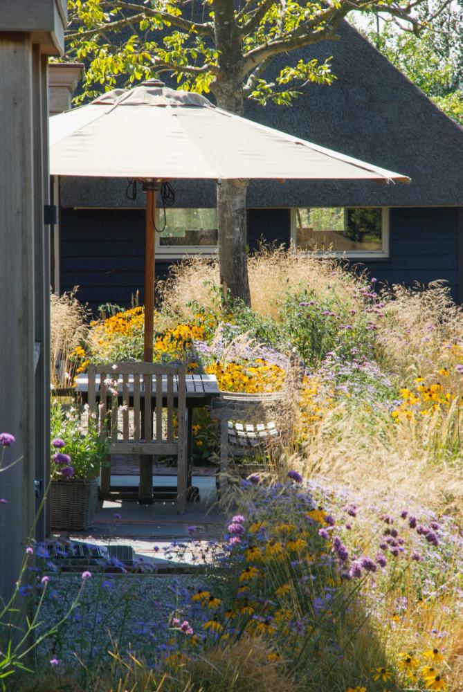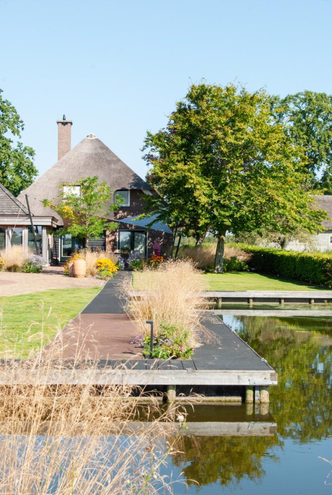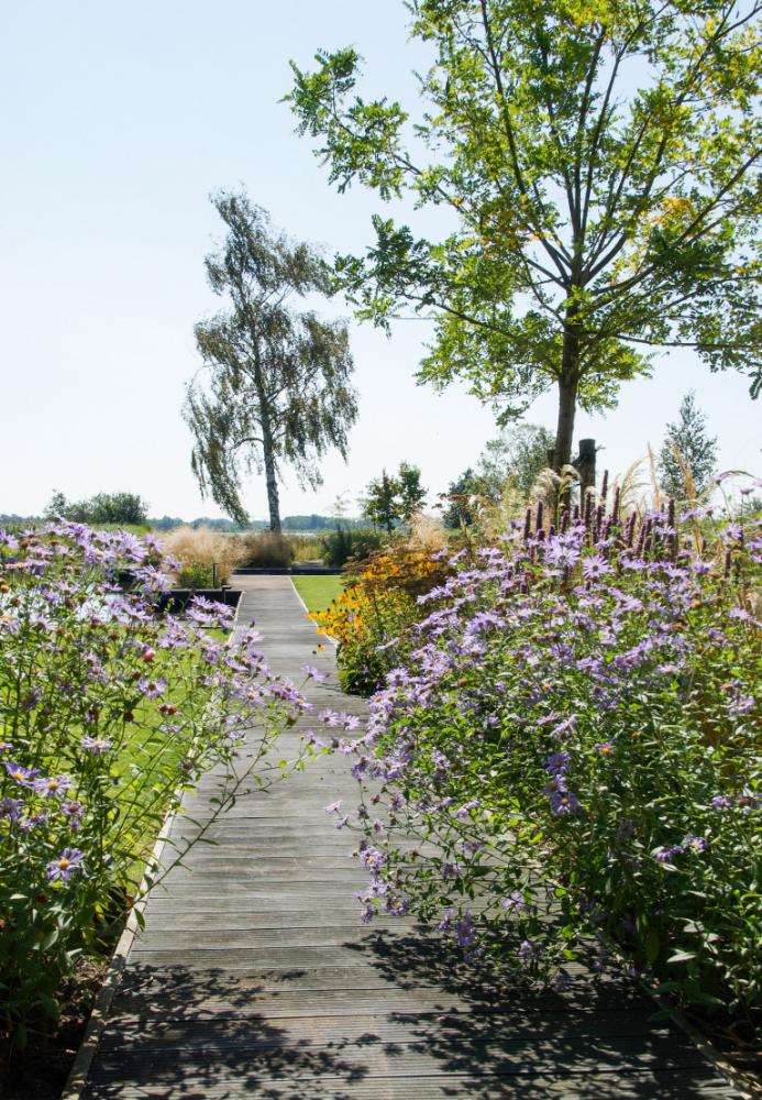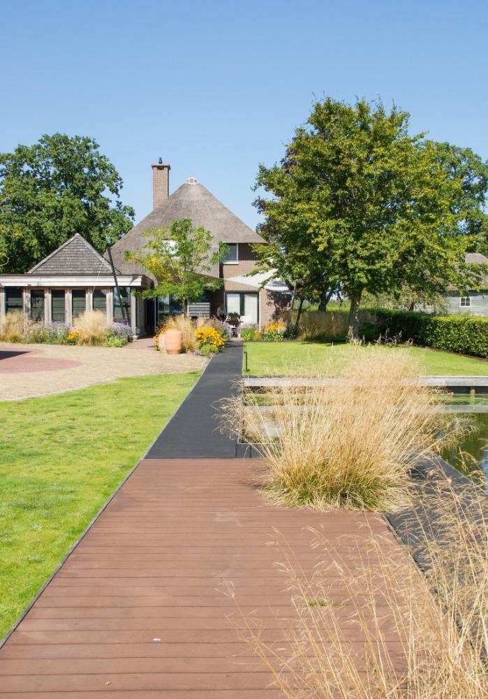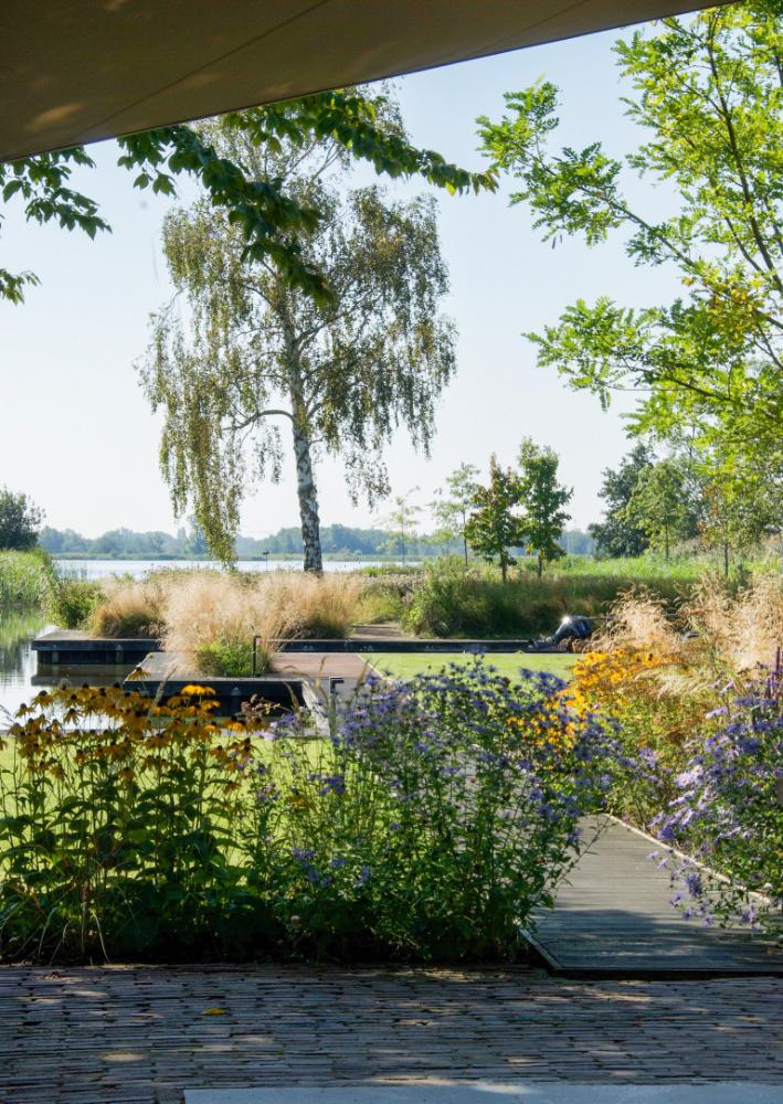 Tevens vormt de beplanting, naarmate je verder de tuin in loopt, steeds meer een verbinding met de rietlanden rondom. Dichter bij de woning vormt het juist een prachtige kleurrijke omlijsting, waarvan je in elke seizoen kan genieten.