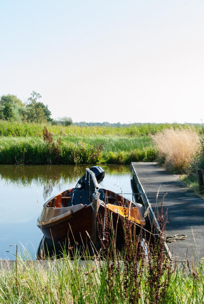 …uitkijkt op het eindeloze landschap van de Weerribben-Wieden. Je voelt je er met recht een met de natuur.